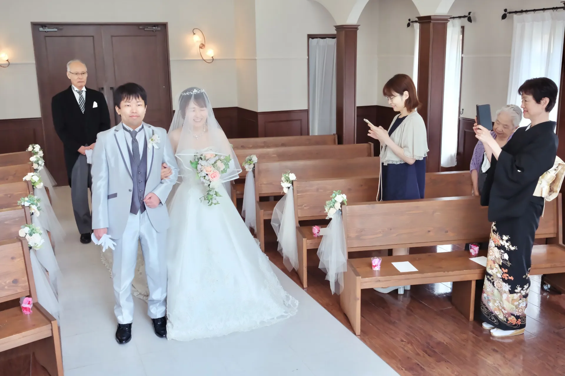 音楽に合わせて結婚式の様に撮影することができるチャペルフォトウェディングプランは、とても人気で、幅広い年齢の方が日本全国から撮影に来られています。