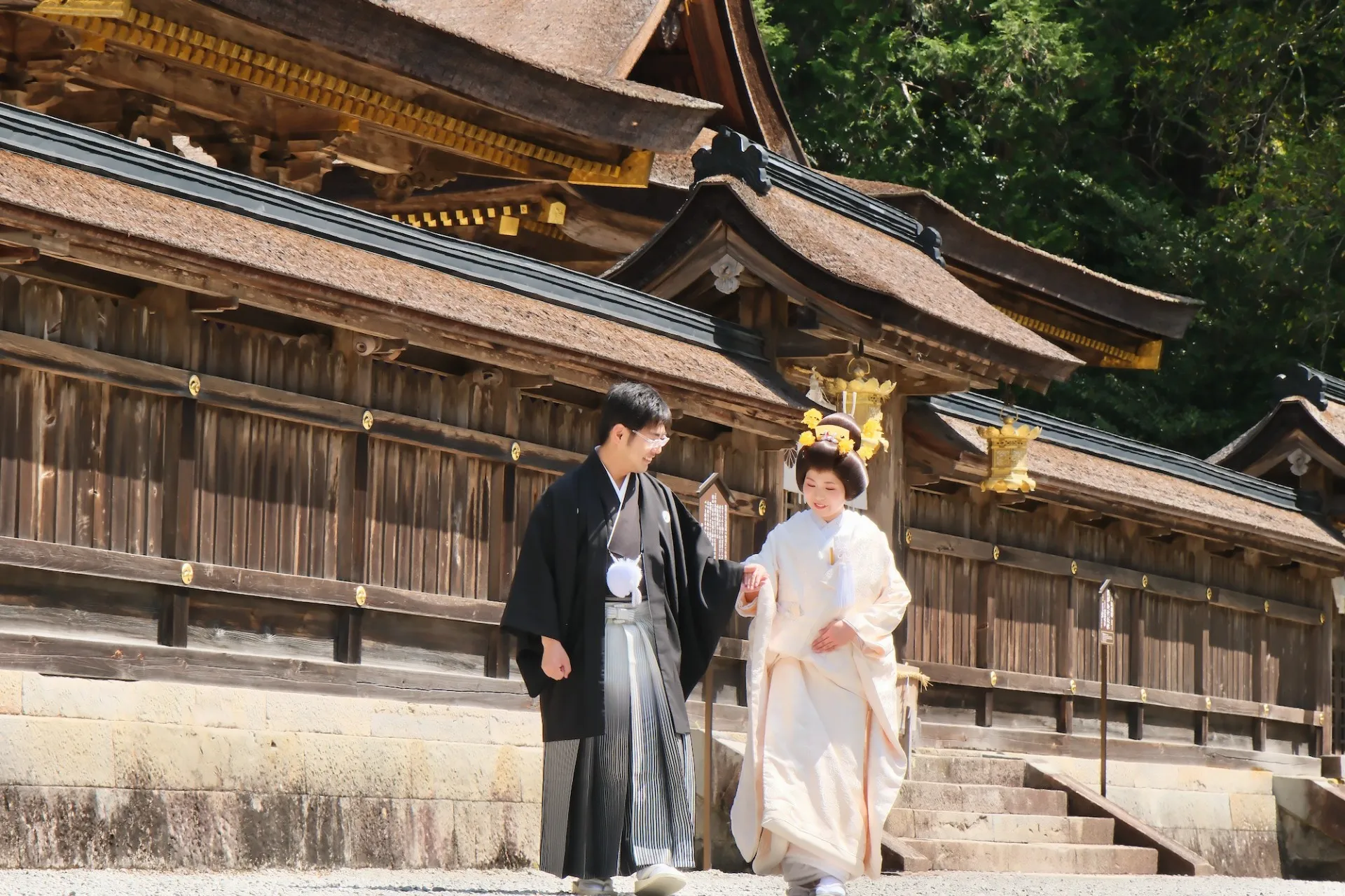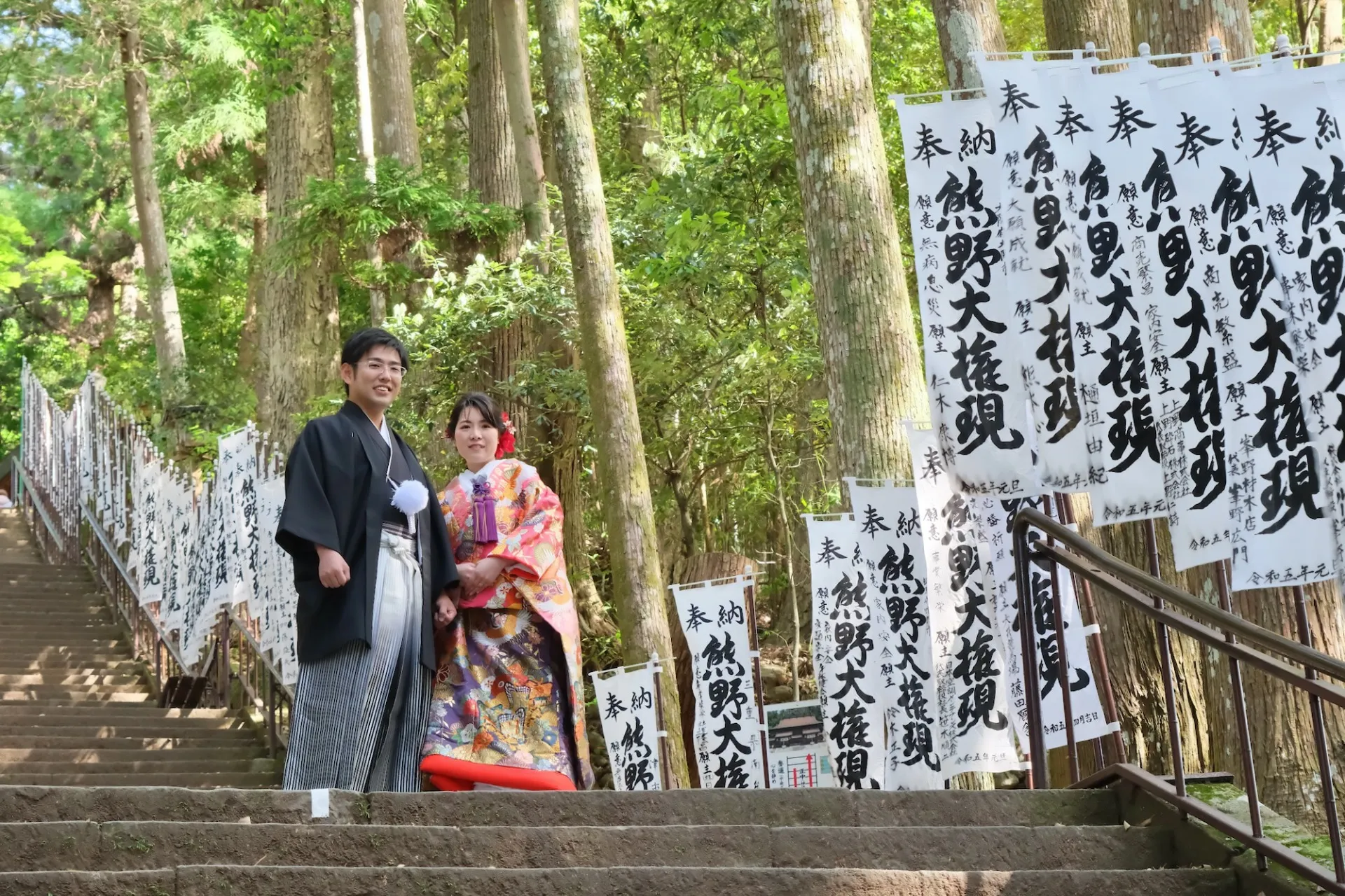 熊野本宮大社の美しい風景が、二人の愛の物語をより深いものにしてくれるでしょう。