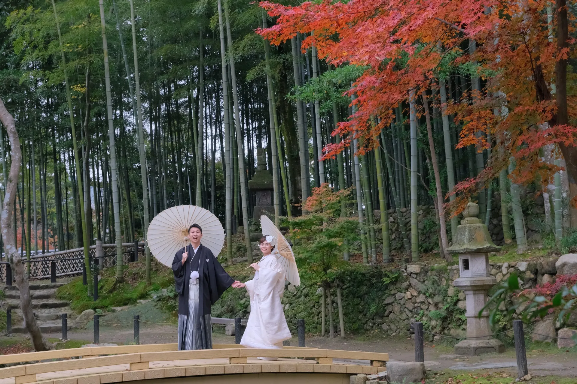 さらに、雨の日ならではの小道具、番傘を取り入れることで、より個性的で楽しい写真を演出することができます。このように、天候を逆手に取る創造的なアプローチを行います。