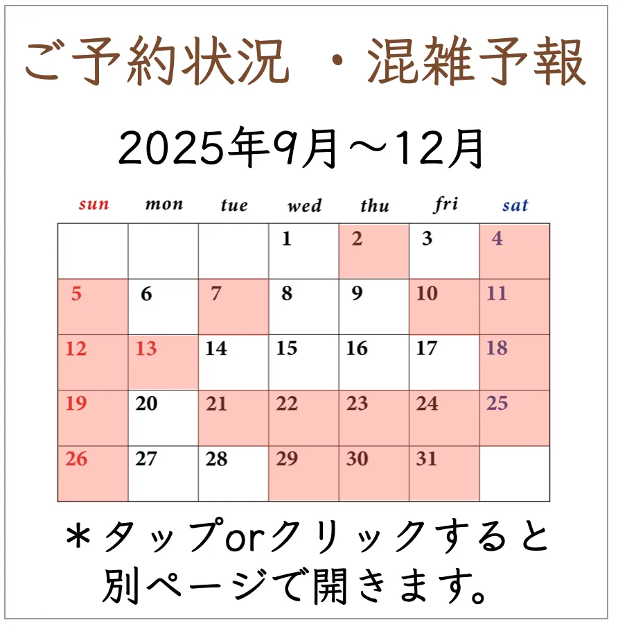 なお、10月11月12月は、ご予約でいっぱいになります。