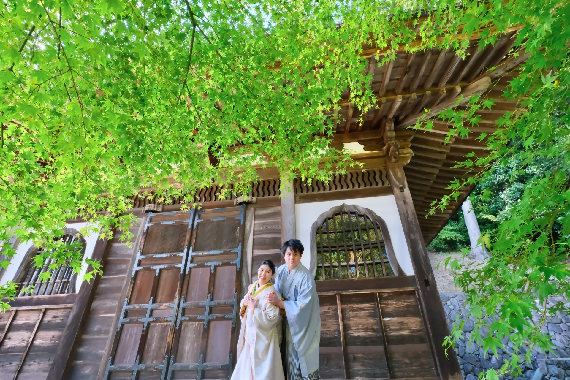 どの季節に訪れても、それぞれの美しさが在り、撮影に最適ですが、ぜひ新緑の時期や秋の時期に撮影をしていただければと思います。特別な日を彩る、素晴らしいフォトウェディングの体験をぜひお楽しみください。