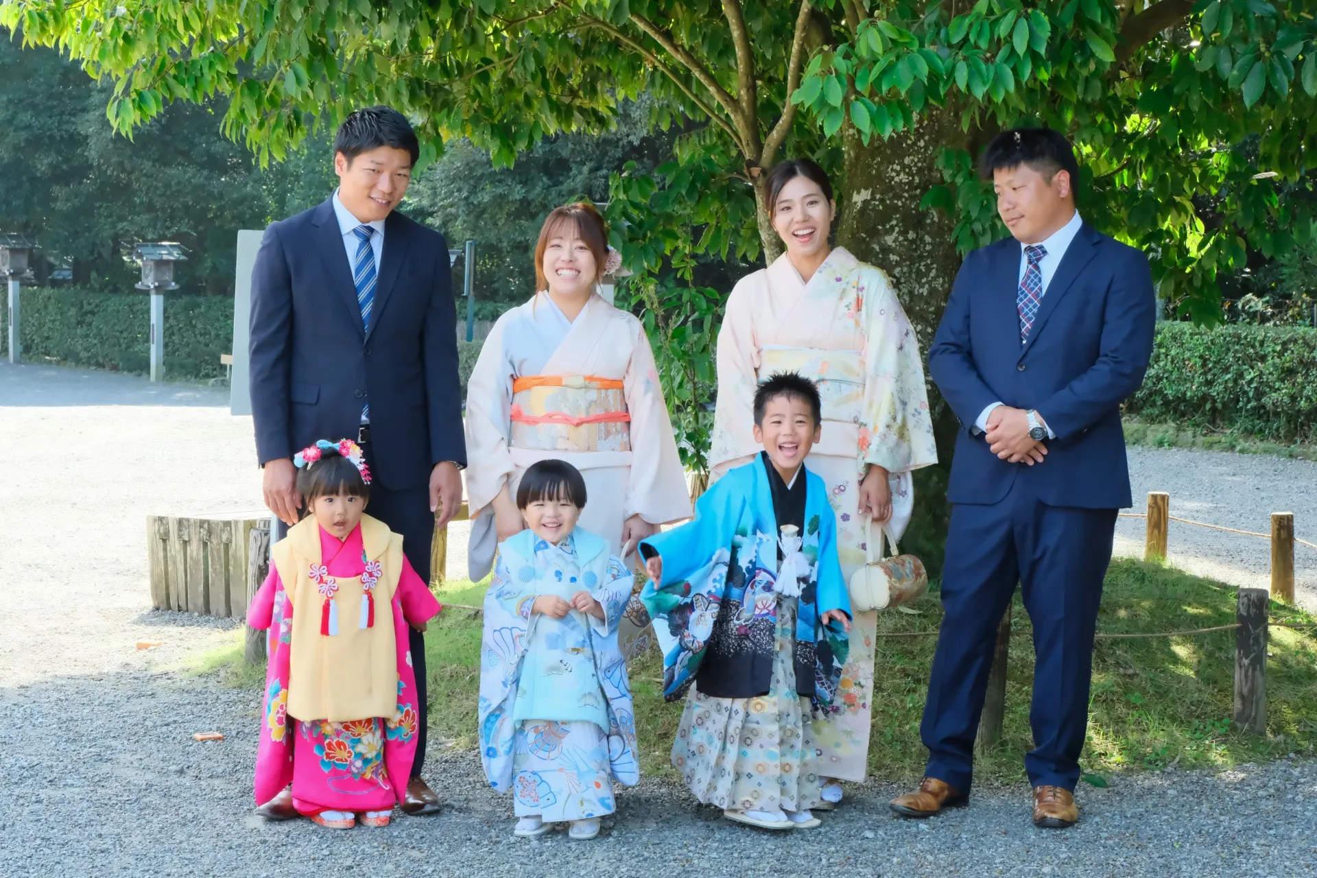 近年の七五三では、女性の方々は、お着物を着用される方が多く、男性の方は外の方が多いですね。
