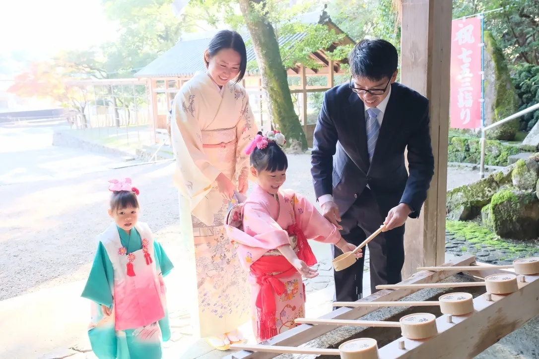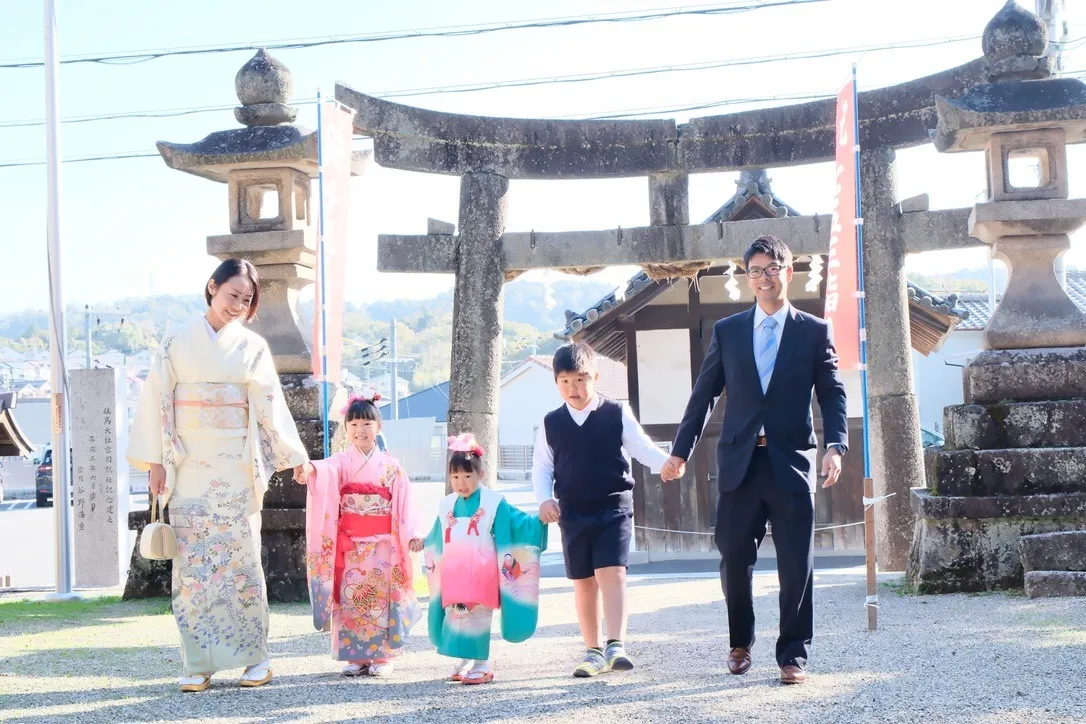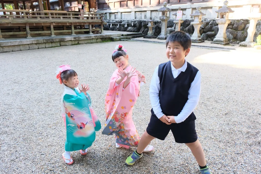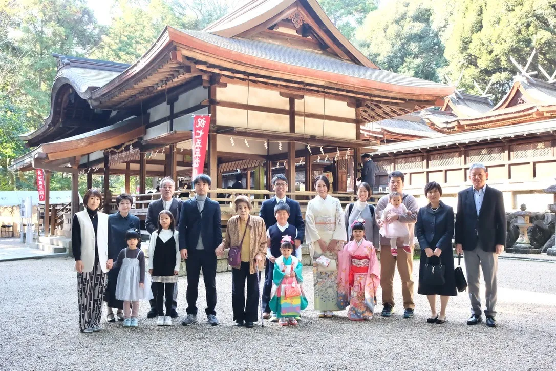 長い歴史を持つこの神社は、緑豊かな自然と伝統的な社殿が美しく調和しており、子どもの成長を祝う七五三の行事にふさわしい厳かな雰囲気を醸し出しています。