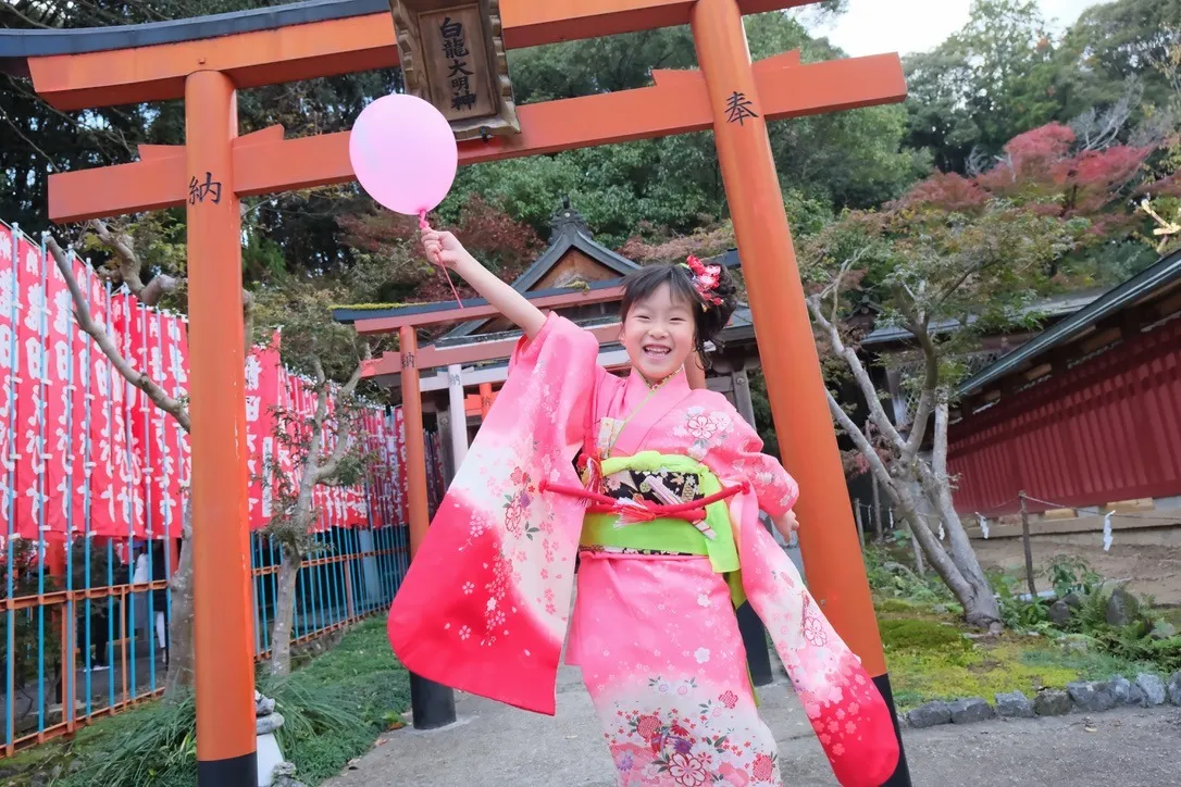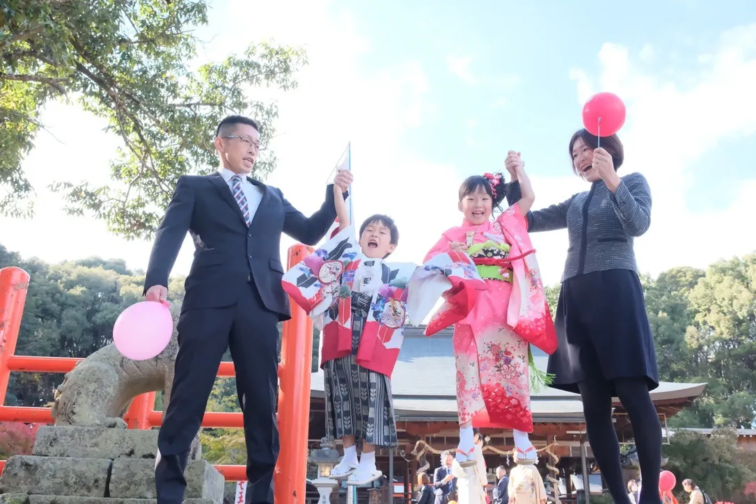 子どもたちが伝統的な和装で彩られるこの季節、神社の荘厳な建築美と自然光が調和し、心に残る家族写真の撮影が可能です。