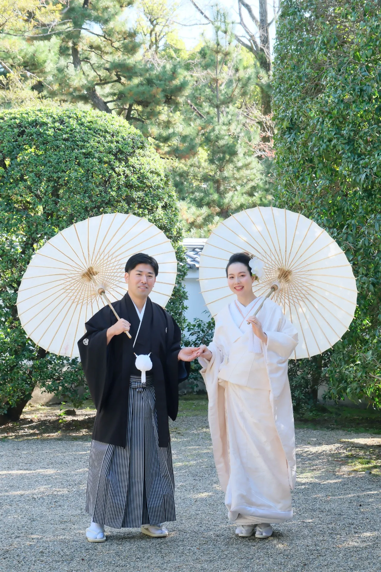 御香宮神社での婚礼撮影は、新郎新婦の特別な瞬間を永遠に美しく残す理想的な選択肢であり、格式と自然美が融合した唯一無二の空間を体感できます。
