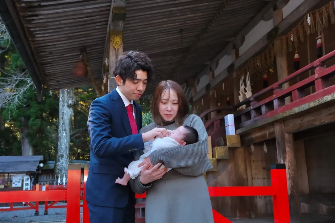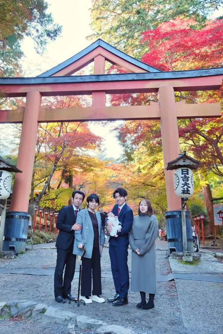 初めてのお宮参りという大切な記念日に、日吉大社での家族写真は一生の宝物になることでしょう。