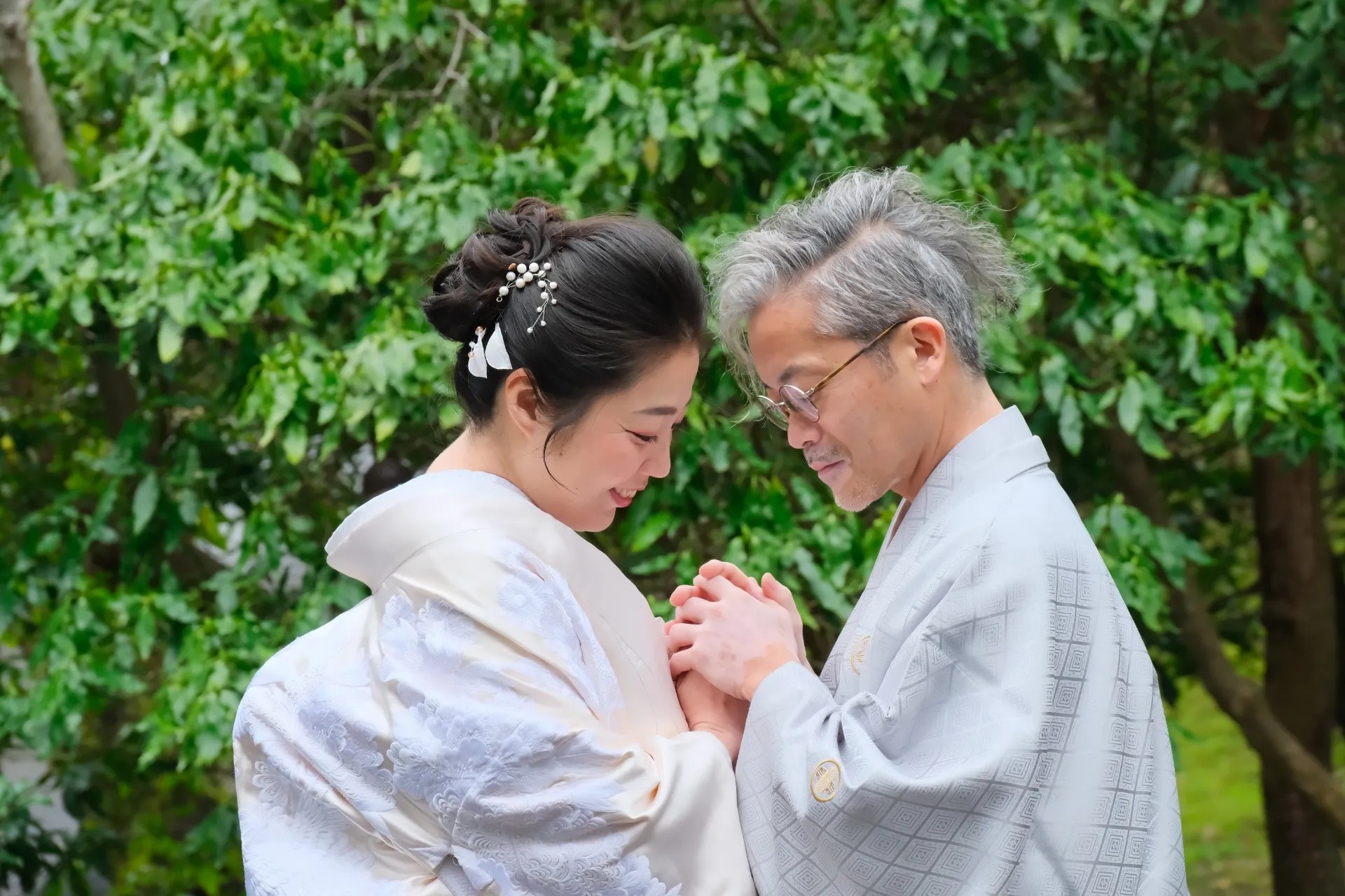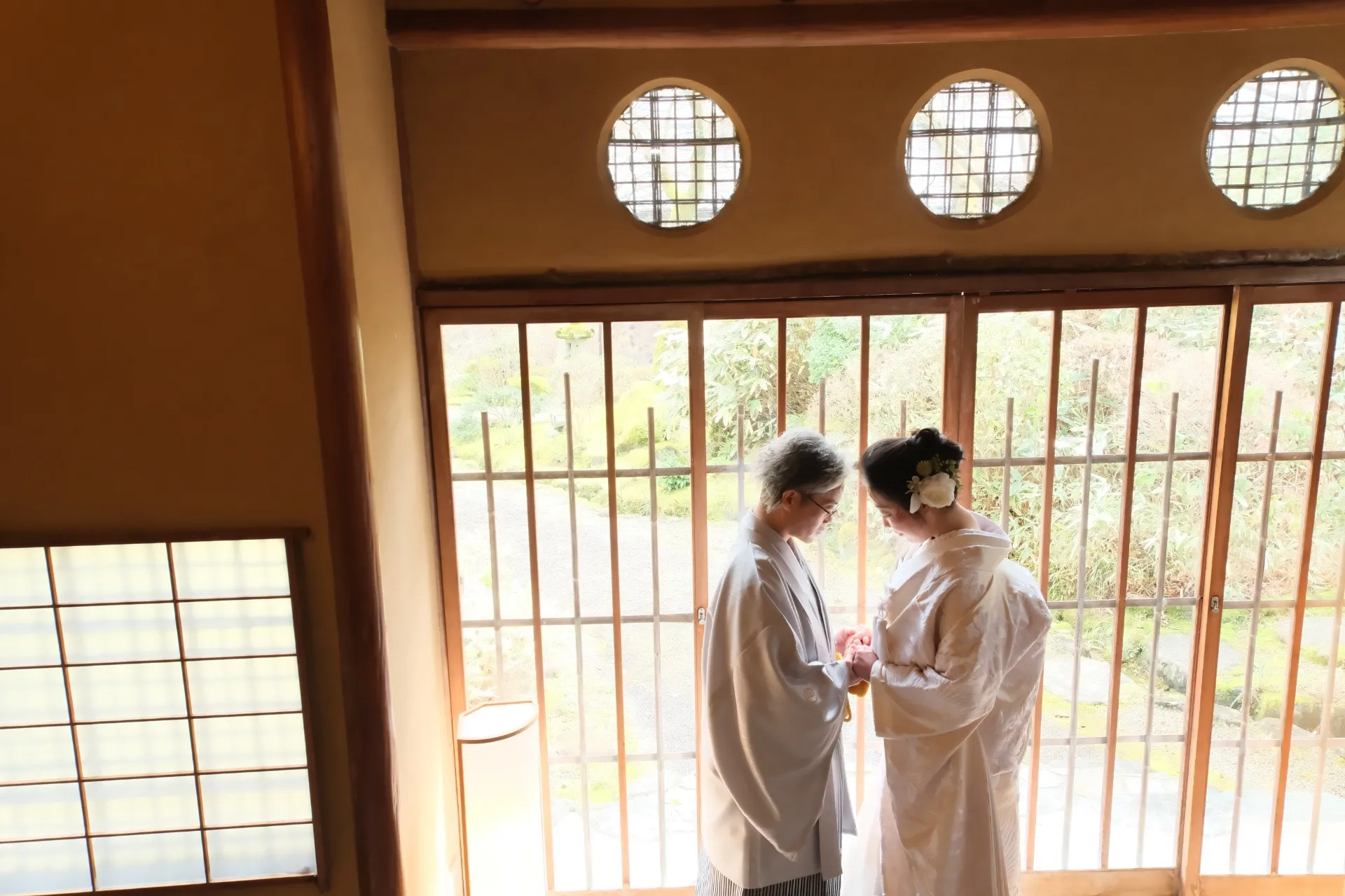 プロのウェディングフォトグラファーは、百楽荘の静かな美しさに溶け込みながら、特別な日の感動をそのまま写真に閉じ込めます。
