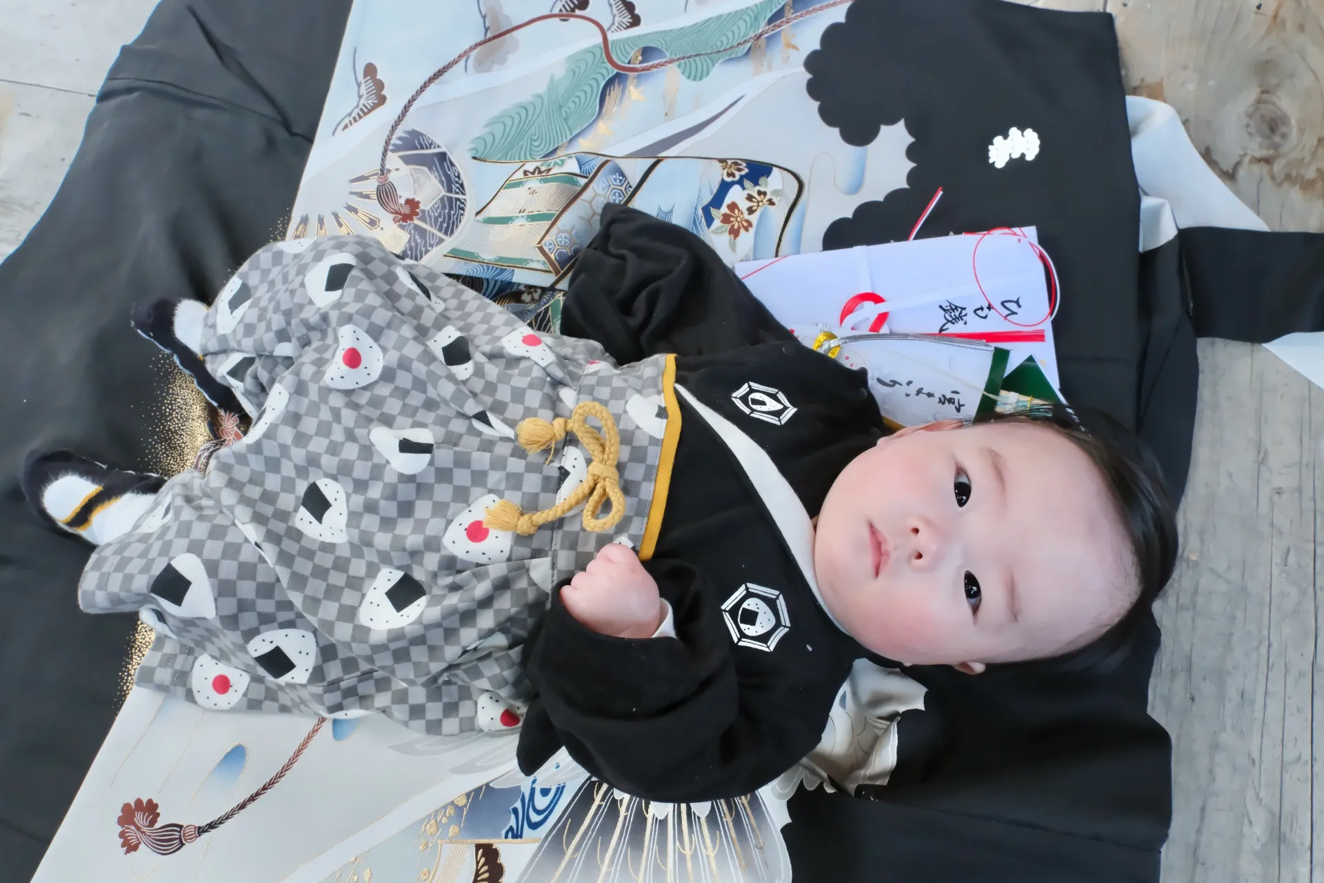 今日の赤ちゃんは、とてもかわいい着物を着られていました。
