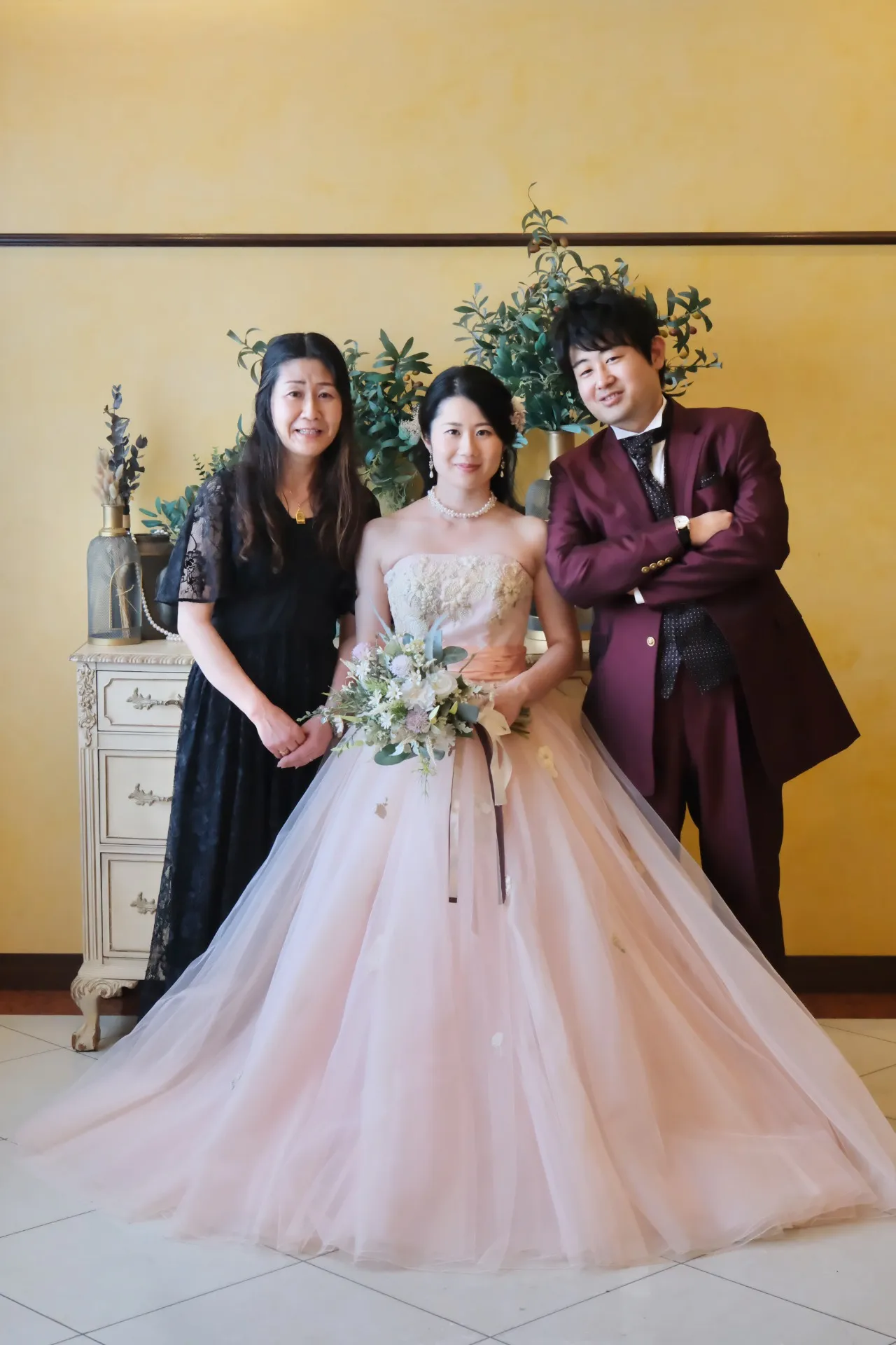特におすすめなのは、家族全員での集合写真のほか、親御さんとのツーショットや世代ごとに分けたカットを取り入れることです。例えば「両家の母親と新婦の3ショット」や「祖父母と孫のカット」など、家族ごとの絆を表現できます。