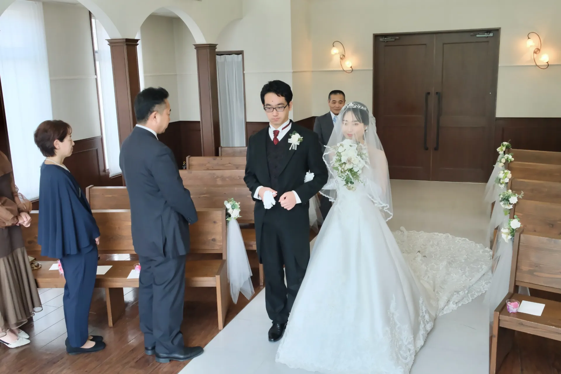 実際にチャペルフォトウエディングを体験したカップルからは、「結婚式のように音楽に合わせて写真を撮る時間が一生の思い出になった」「家族と一緒に撮影できて感動した」といった声が多く寄せられています。荘厳な雰囲気の中で、ふたりらしい表情や家族との温かなシーンを残せる点が高く評価されています。