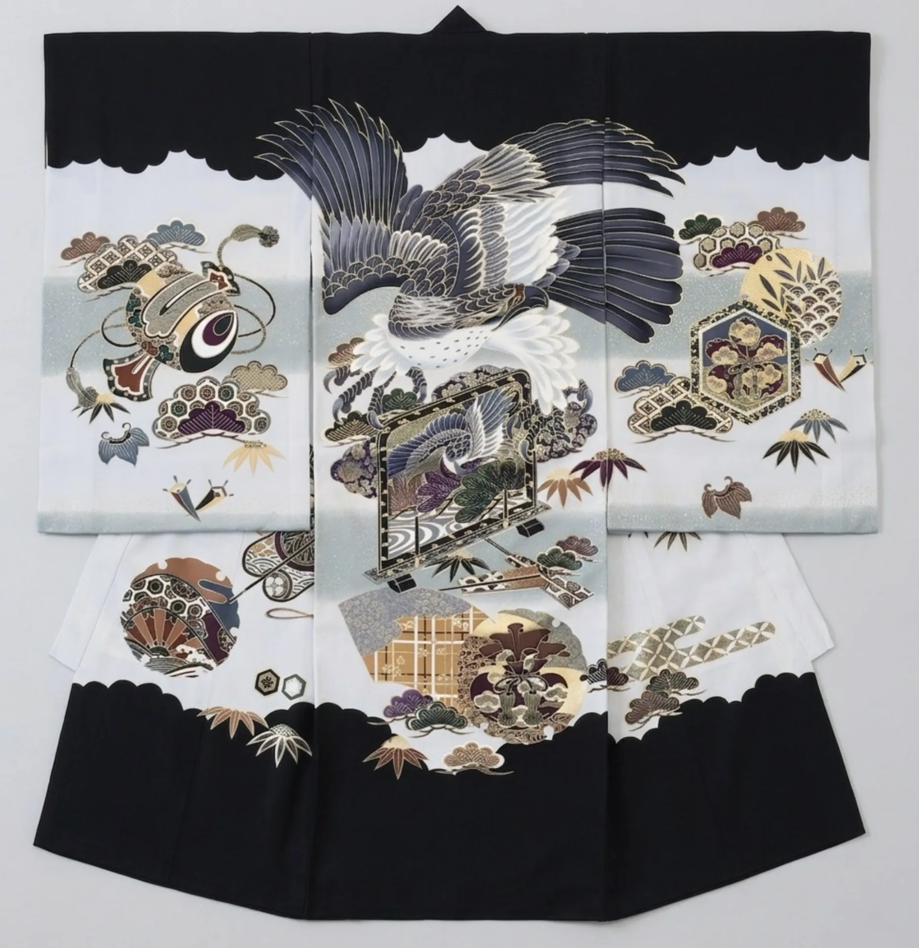 男の子初着の色や柄選びでは、特に豪華で祝福を表す刺繍が施されたものが好まれる方が多いので、今回は華やかなものばかりです。